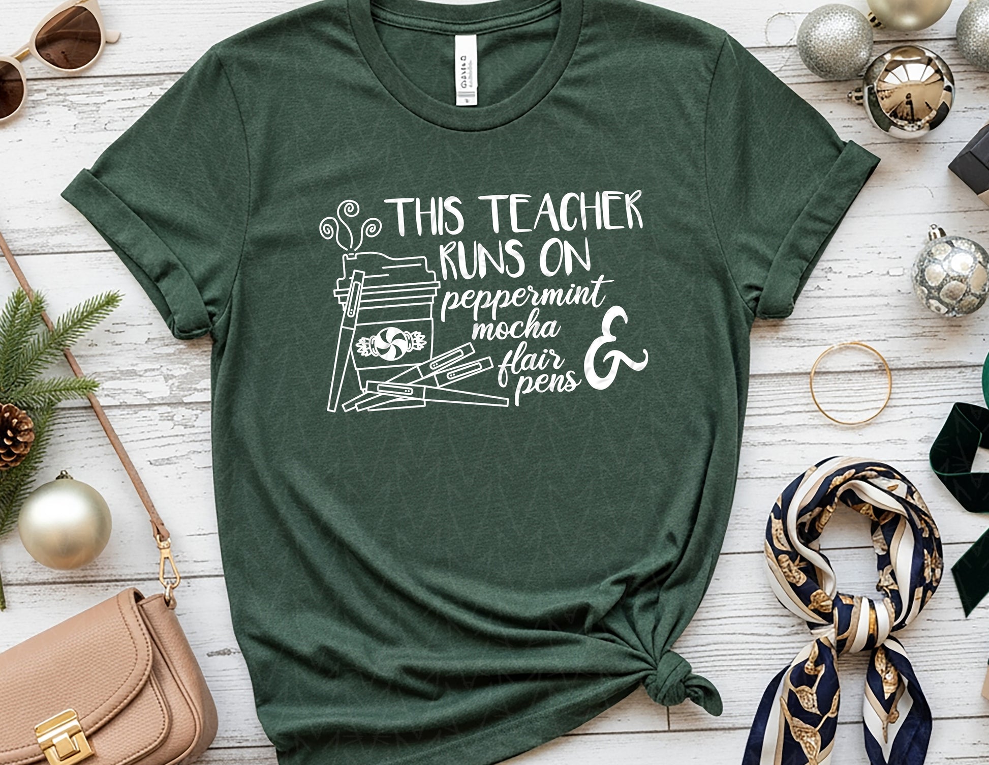Kick off the season with a sparkle of winter and classroom essentials, making it perfect for educators who run on equal parts holiday spirit and coffee. Whether you're grading papers, decorating your classroom, or sipping your favorite seasonal latte, this shirt brings cozy, cheerful vibes to every school day. Cute, comfy, and oh-so-relatable, it’s a must-have for every peppermint-loving teacher this season.