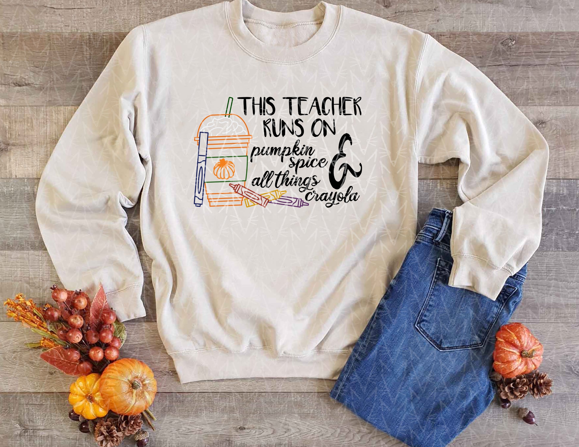 This Teacher Runs on Pumpkin Spice & Crayons Sweatshirt (Full Color Graphic)